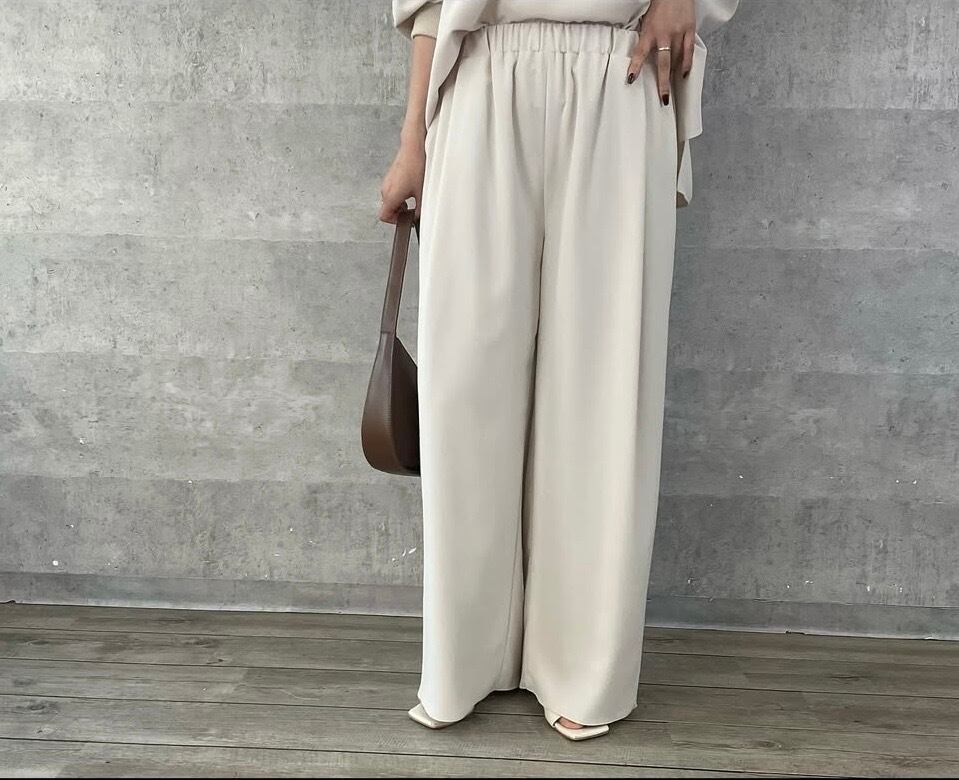 **annakerry セットアップ可能商品 サラサラとろみズボン** **エステル素材で快適な着心地** このズボンは、エステル素材を使用しており、さらさらとしたトロミ感が魅力です。肌に柔らかくなじみ、日常のカジュアルシーンからおしゃれなお出かけまで、シーンを選ばずに活用できます。独特のリラックス感を演出しつつも、スタイリッシュな印象を与えるデザインです。 **動きやすさを追求したデザイン** 動きやすさを考慮したシルエットになっているため、どんな動きにも対応可能。さらさらとした素材感は、体のラインを美しく見せるだけでなく、履き心地も抜群です。あたたかい季節でも快適に過ごせる仕様です。 **お手入れも簡単でストレスフリー** エステル素材はシワになりにくく、お手入れも楽々。洗濯後も美しさを保つため、忙しい毎日を過ごしている方にもぴったりです。 **さあ、あなたのワードローブにこのアイテムを取り入れて、自由自在なスタイルを楽しんでください!**