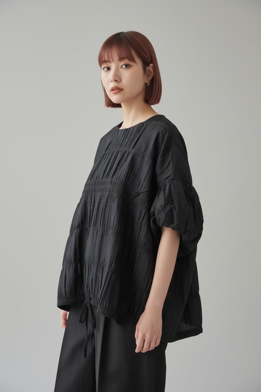 ■商品名:1000人達成有難う祭り プリーツ前後着用可能トップス 裾紐付きドロスト こちらは、前後着用可能なデザインが特徴のプリーツトップスです。軽やかな綿100%素材を使用し、デイリーコーデに華やかさをプラス!裾にはドロスト紐が付いており、シルエットの調整が可能で、様々なスタイルに対応できます。カジュアルな日常使いや特別なお出かけにもぴったりで、幅広いシーンで活躍すること間違いなしです。シンプルながらもデザインにこだわりが詰まった一着は、複数のボトムスとコーディネートしやすく、あなたの魅力を引き立てます。心地よい着心地でおしゃれを楽しむ毎日を、このプリーツトップスで彩りましょう!この機会にぜひお手元にどうぞ!