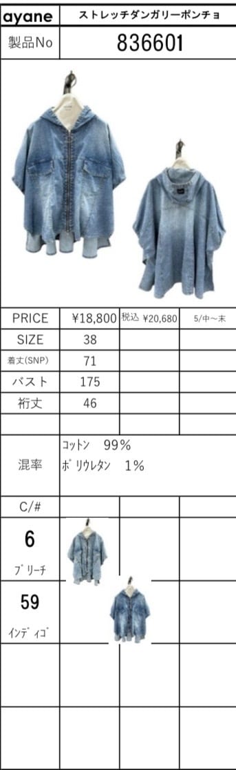 ayane ストレッチダンガリーポンチョ