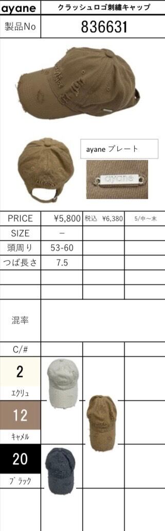 ayane クラッシュロゴ刺繍キャップ