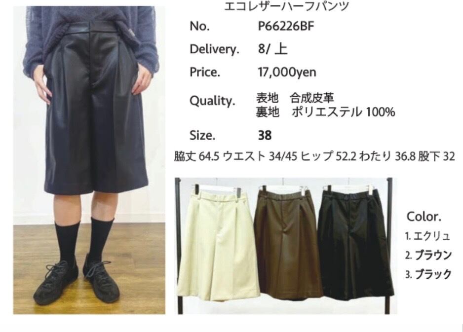 PRIORITY エコレザーハーフパンツ